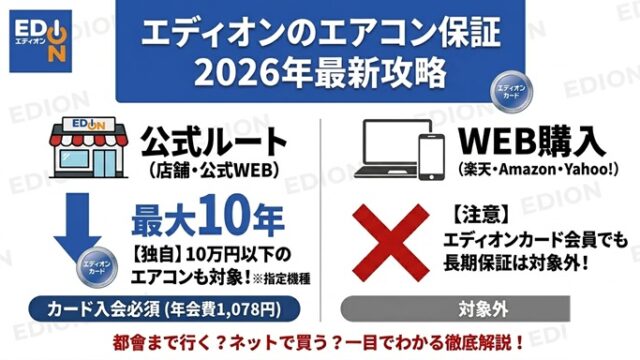 エディオンのエアコン10年保証、楽天・Amazonは対象外!?失敗しない買い方を解説