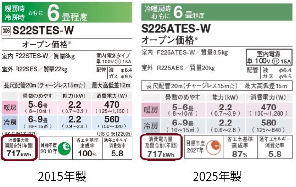 差(2025−2015) | — | ±0 kWh/年(変化なし) | ±0 | 価格1万円程度 |