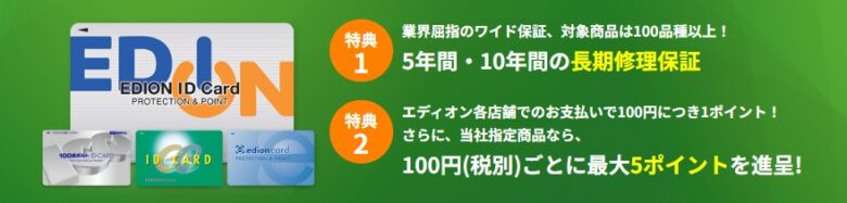 ✅ 年会費1,100円で手厚い10年保証が受けられる「エディオンカード保証」