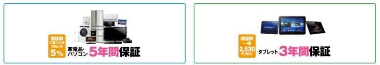 購入した家電の種類によって、3年/5年/10年保証のいずれかが自動的に適用されます。