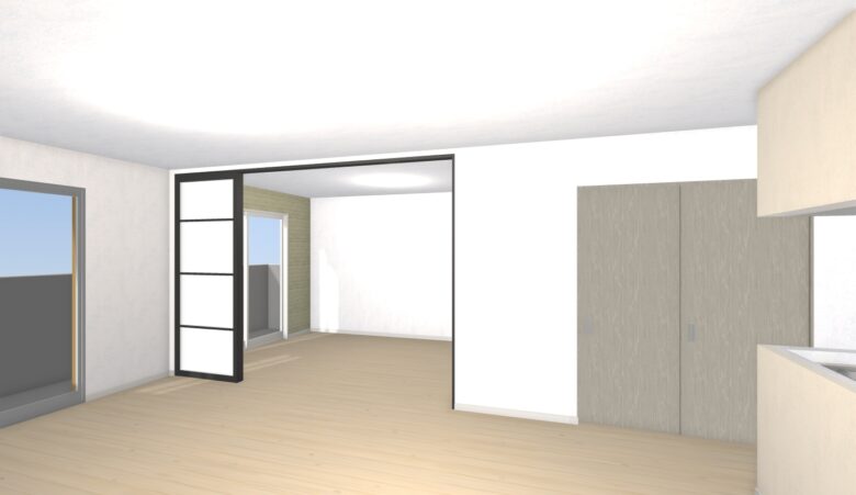 例えばこちらはリビングと隣接する洋室を4枚のアルミ扉で仕切ったケースです。